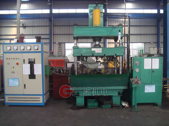3、支撐模具安裝在工作臺(tái)上,工件置于模具內(nèi),加熱后上模下壓,合模后噴液冷卻。
